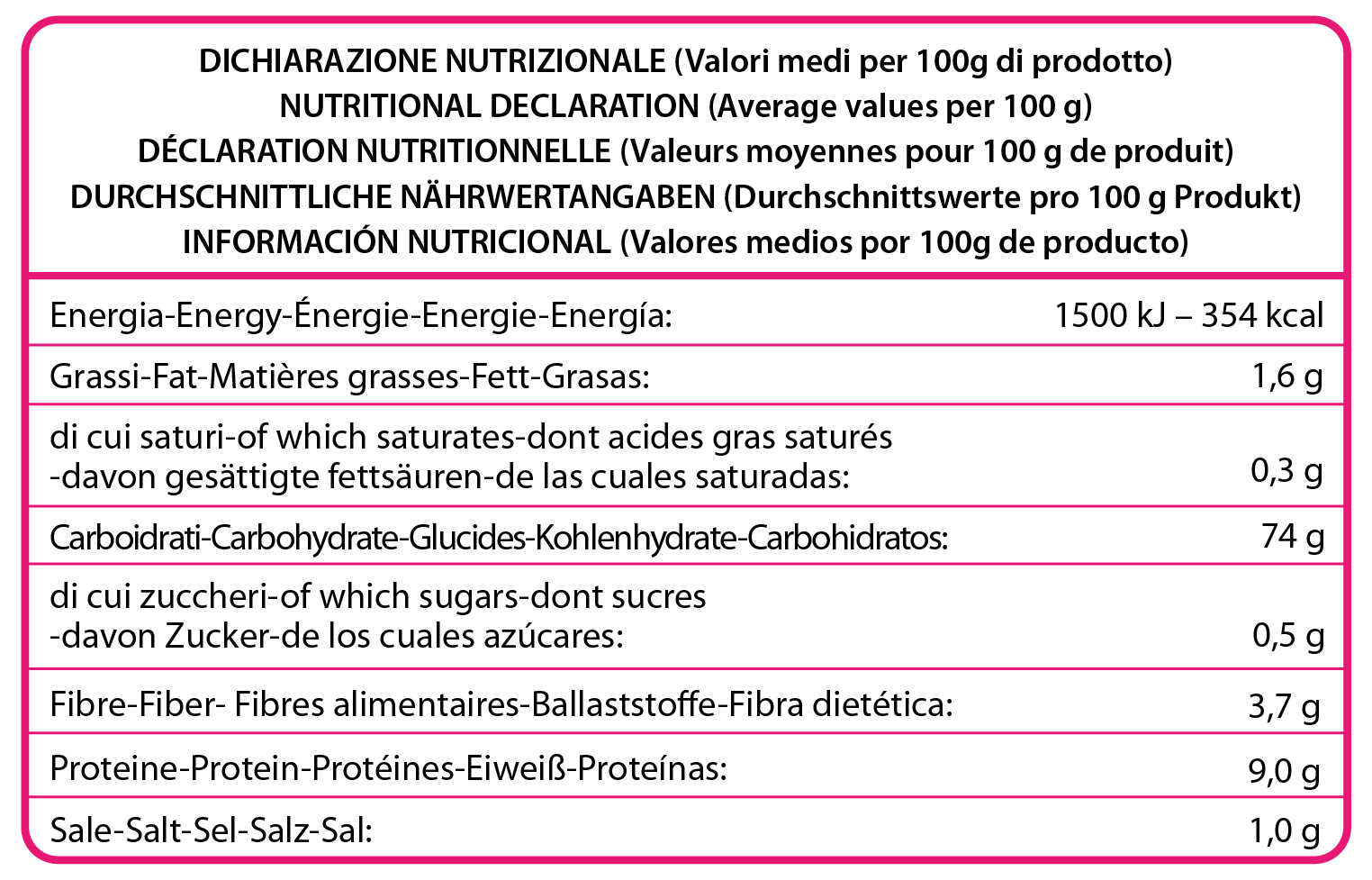 | Ingredienti | Farina di farro, Farina di mais, Sale |