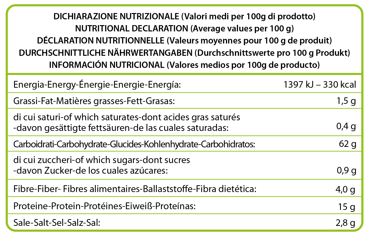 Ingredienti: Farina di piselli (51%), farina di mais (48%), sale.