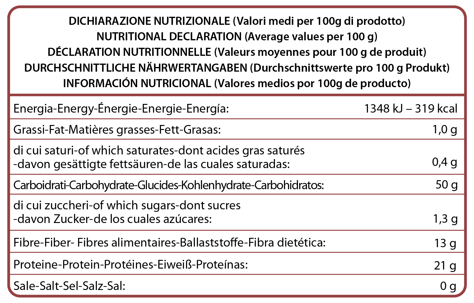 Ingredienti: Farina di azuki* rossi. *Ingrediente biologico.