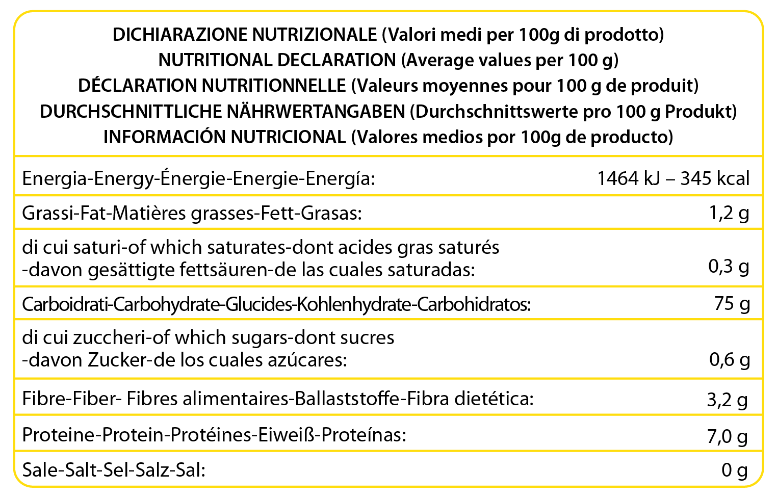 | Allergeni | Glutine, Senape, Sesamo, Soia |