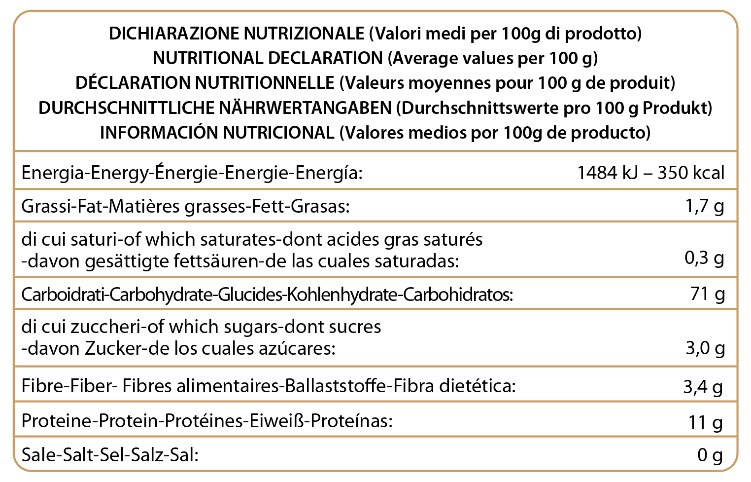 Ingredienti: Grano* tenero. *Ingrediente biologico