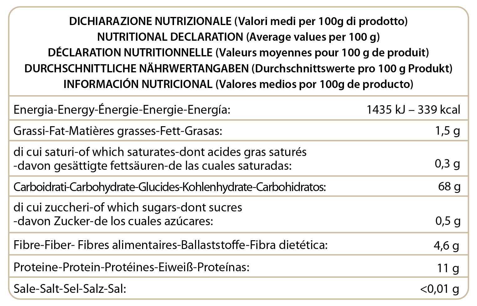 | Allergeni | Glutine, Senape, Sesamo, Soia |