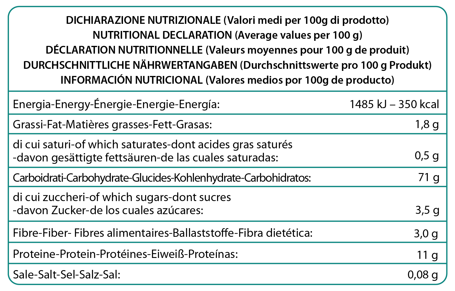 Semola di grano* duro, spirulina* (1,9%). *Ingrediente biologico.